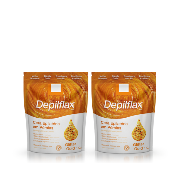 Depilflax Cera Depilatória em Pérolas Glitter Gold 1kg - 2 Unidades