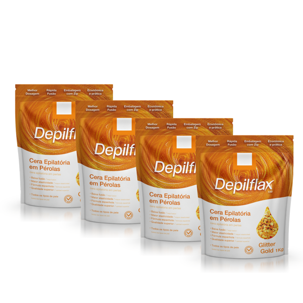 Depilflax Cera Depilatória em Pérolas Glitter Gold 1kg - 4 Unidades