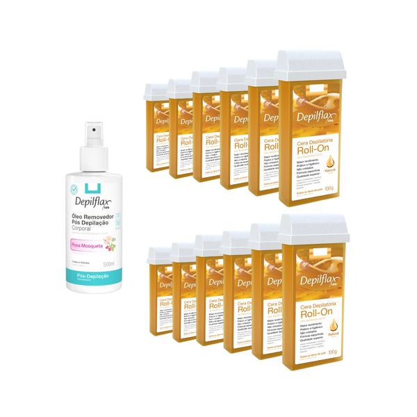 Depilflax Cera Roll-on Refil Natural 100g 12 Uni + Óleo Pós Depilatório 500ml