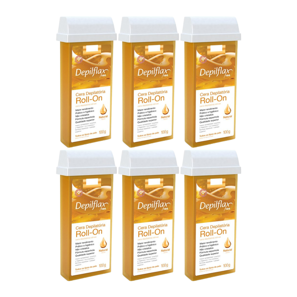Depilflax Cera Roll-on Refil Natural 100g - 6 Unidades