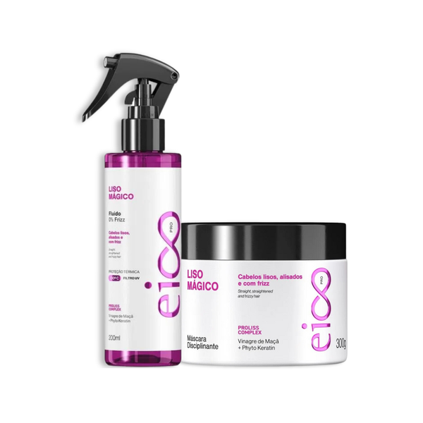 Eico Pro Liso Mágico: Máscara Disciplinante 300ml + Fluído 0% Frizz 200ml - O Duo Imbatível para um Liso Deslumbrante e Sem Frizz