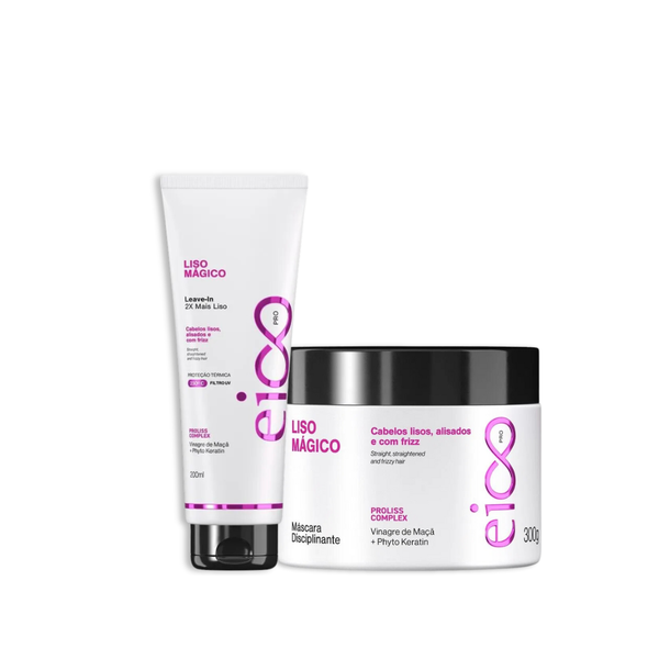 Desvende o poder de um liso impecável e duradouro com o duo dinâmico da Máscara Disciplinante Liso Mágico e do Leave-in Liso Mágico da Eico Pro. Enriquecidos com o exclusivo ProLiss Complex, uma avançada tecnologia que combina Vinagre de Maçã e Phyto Keratin, estes produtos trabalham em conjunto para proporcionar um tratamento intensivo que alinha as cutículas, hidrata profundamente, controla o volume e protege seus cabelos. A Máscara Disciplinante nutre e sela os fios, deixando-os incrivelmente macios e maleáveis, enquanto o Leave-in prolonga o efeito liso, desembaraça, hidrata sem pesar e oferece proteção térmica de até 230°C e filtro UV. Juntos, eles garantem cabelos lisos, sedosos, brilhantes e protegidos contra os danos do calor e do sol.