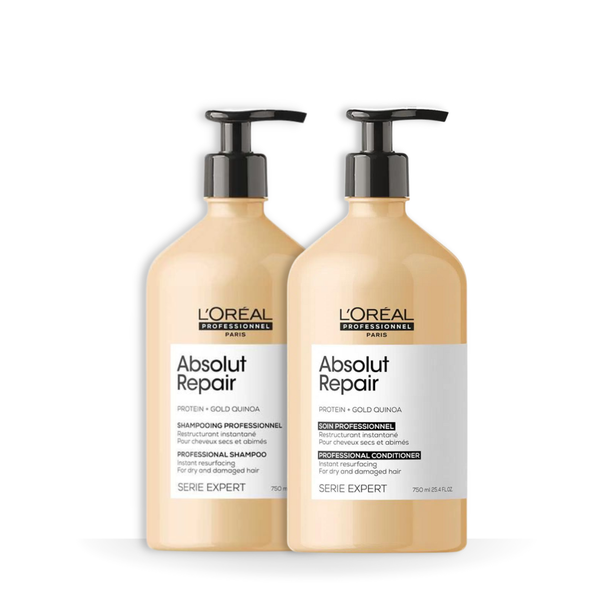 L'Oréal Absolut Repair Gold Quinoa + Protein Duo Tamanho Salão: Reparação e Brilho Profissional para Cabelos Danificados