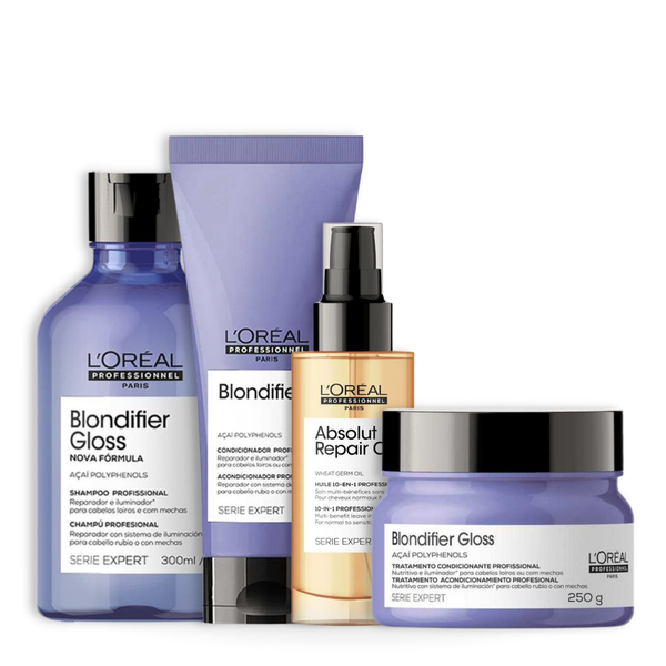 L'Oréal Professionnel Blondifier Gloss Trio Brilho Intenso + Óleo: Shampoo, Condicionador, Máscara e Óleo para Loiros Deslumbrantes e Nutridos