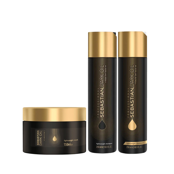 Kit Sebastian Dark Oil Trio Luminosidade: Shampoo, Condicionador e Máscara para Nutrição, Brilho e Leveza
