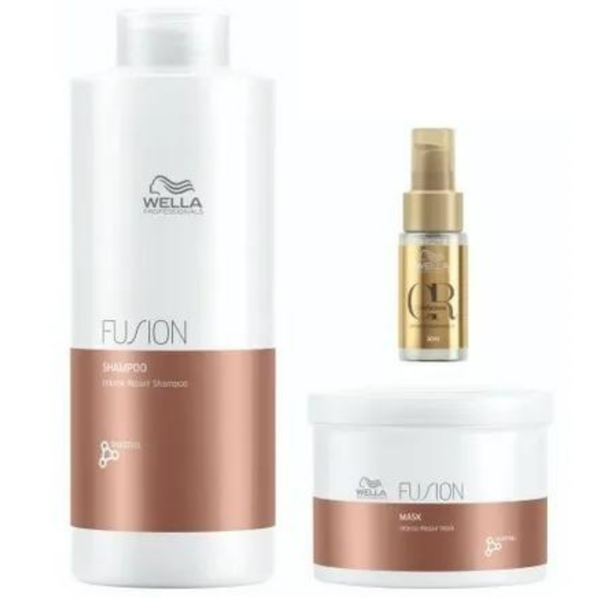 Kit Wella Fusion Shampoo 1000ml + Máscara 500ml + Óleo 30ml