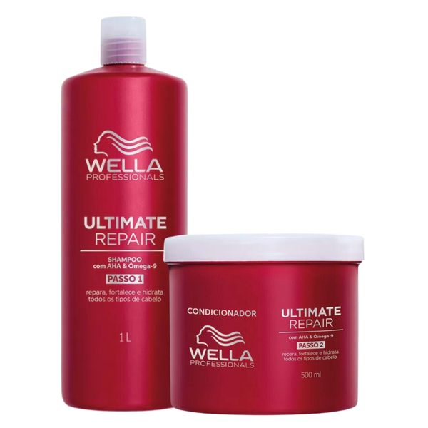 The Kit Wella Professionals Ultimate Repair Shampoo 1000ml + Condicionador 500ml oferece um tratamento eficaz para cabelos danificados em um formato econômico para uso prolongado.