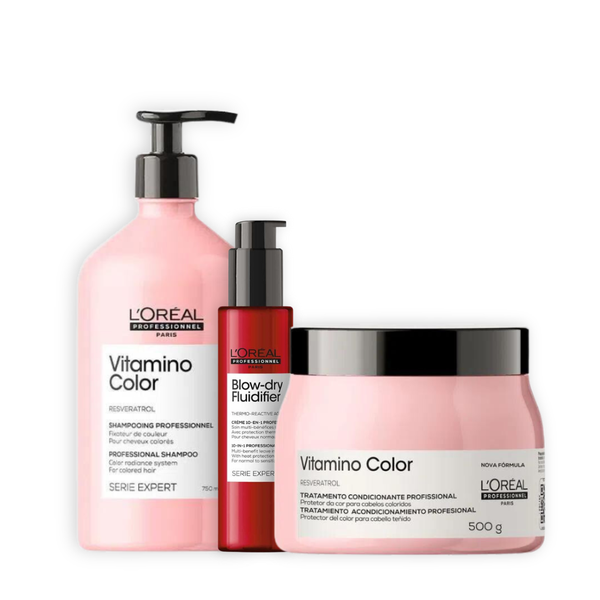 L'Oréal Professionnel Vitamino Color Trio Tamanho Salão: Shampoo, Máscara e Fluidifier para Cabelos Coloridos