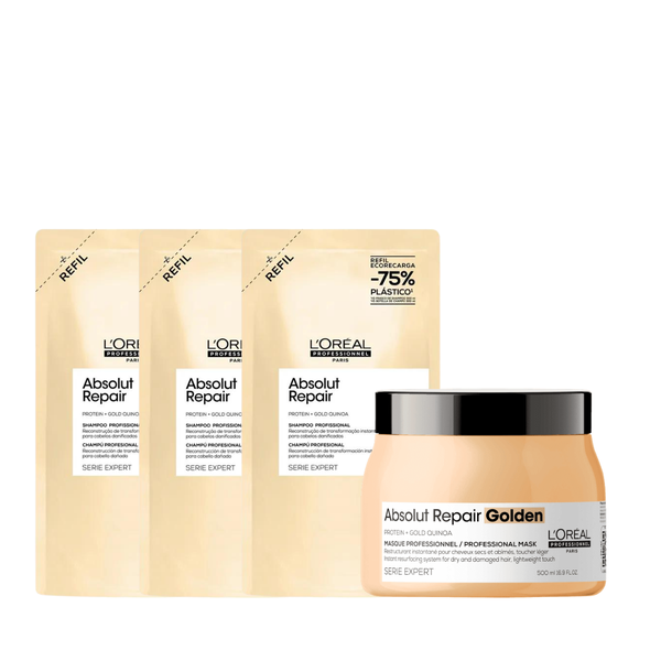 Loreal Absolut Repair Gold Quinoa Shampoo Refil 240ml 3 Unidades + Mascara Light 500ml